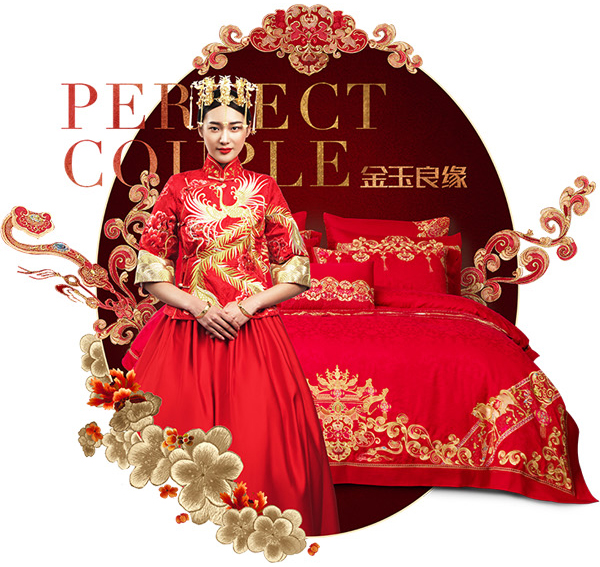 維科家紡以植物花卉為靈感,創(chuàng)造出一種更為接近大自然的設(shè)計(jì),讓忙碌于都市生活的心靈獲得些許安寧?;閼c系列產(chǎn)品運(yùn)用純正的中國(guó)紅搭配刺繡工藝,滿載喜慶的同時(shí)呈現(xiàn)出美好的祝福,營(yíng)造出專屬于新人的浪漫天地。