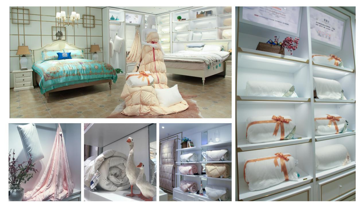 芯類產(chǎn)品一直以來都是家紡行業(yè)銷售的大頭,為進(jìn)一步提高和義店芯類產(chǎn)品銷售業(yè)績,公司特意對一樓原有空間進(jìn)行重新規(guī)劃,開辟了一塊80余平的獨(dú)立芯類區(qū),芯設(shè)計上采用白色貨柜、鍍鈦金屬件、金屬玻璃柜的組合,讓整個芯類區(qū)更加通透明亮。維科家紡主打的維科朵絨被、蠶絲被、石墨烯纖維被等都將在該區(qū)域以展床、垂掛、卷筒等不同形式進(jìn)行集中展示。此外,售價近三十萬的鎮(zhèn)店之寶——至尊冰島雁鴨絨被,也首次亮相和義店。
