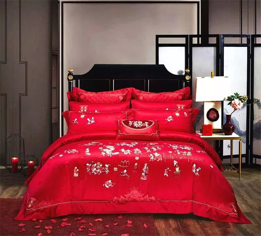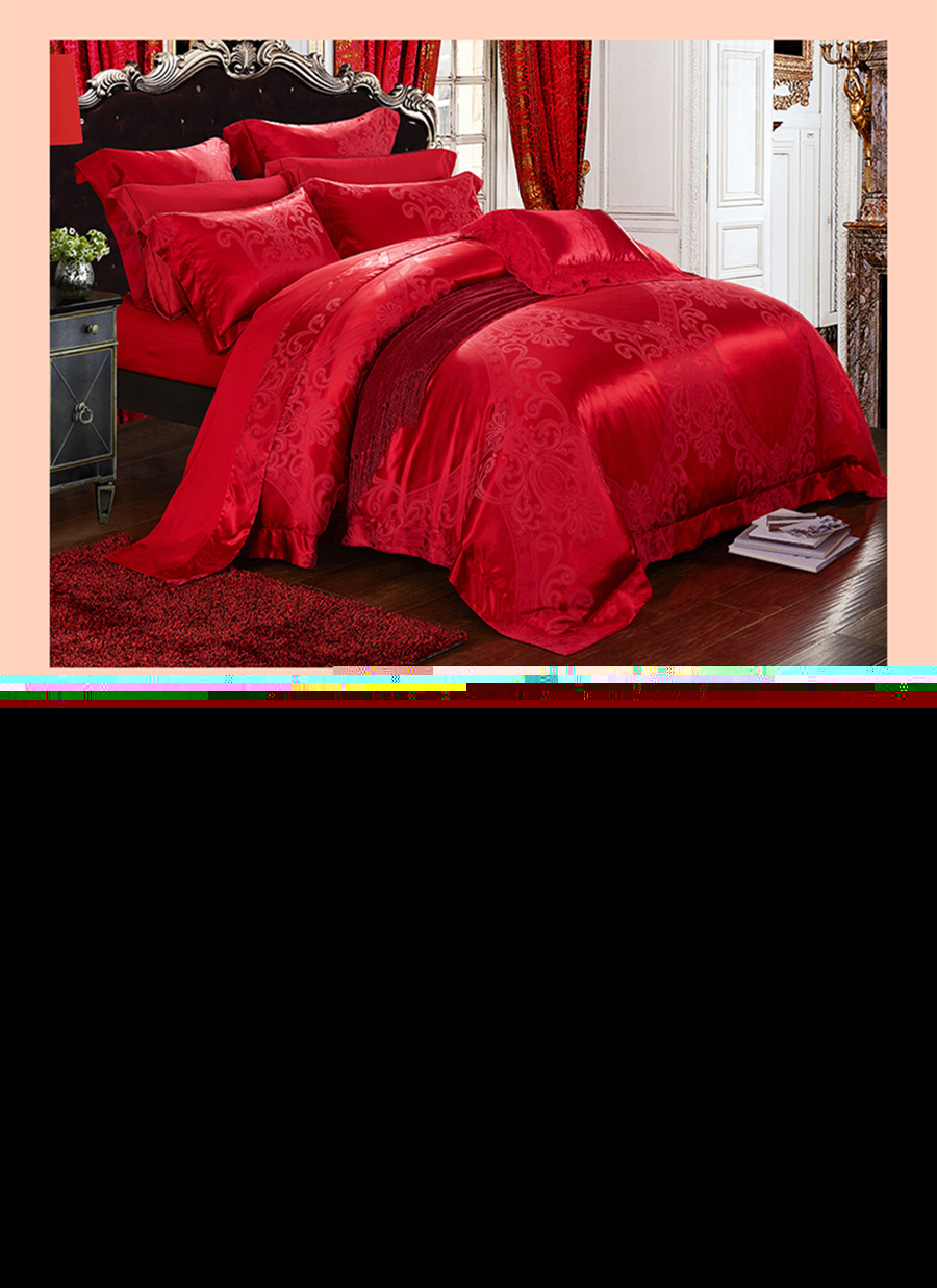 中國紅是中國人結(jié)婚必須的顏色,結(jié)婚當(dāng)天一定需要鋪一套紅色的床品,即鎮(zhèn)宅也象征新人從此紅紅火火幸福美滿。