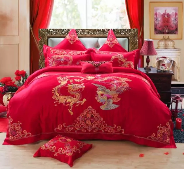 二、床上用品:一般選擇紅色,有的地域要求床上要有四床被子、四床褥子、兩對枕頭、兩對靠墊等十八件物品。